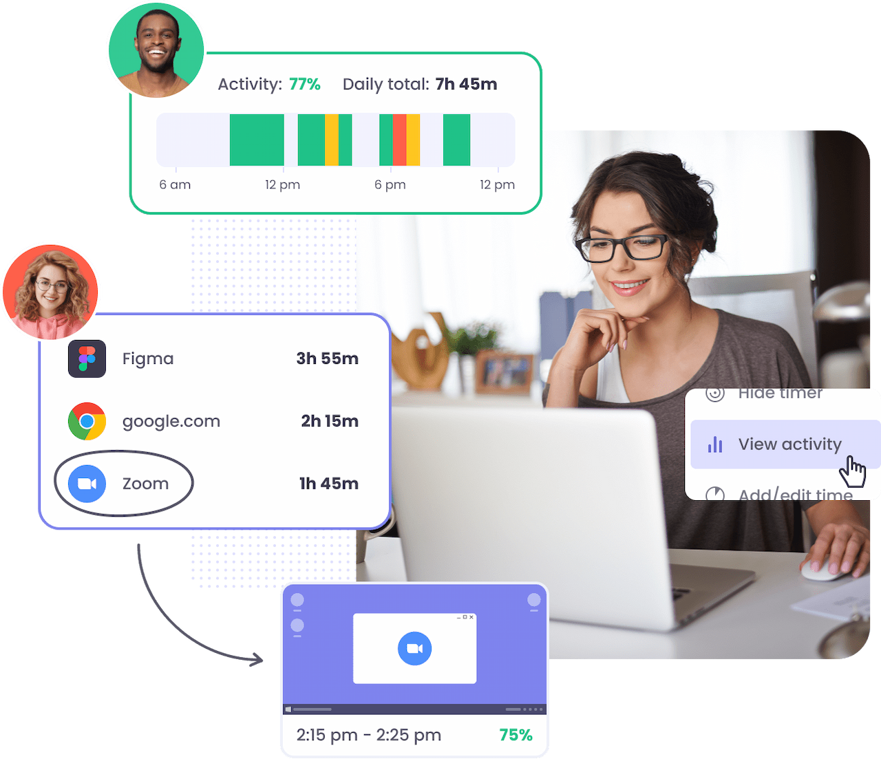 Monitask focuses on monitoring employees' activities. It helps businesses in boosting productivity, efficiency, and responsibility across teams. It enables team managers by assigning employees to different tasks. Monitask helps organizations capture advanced screenshots in the background for regular checking of employees' progress. While this software is lightweight, it offers lesser features than the others on the list. But every feature it offers may be useful for small businesses and startups.